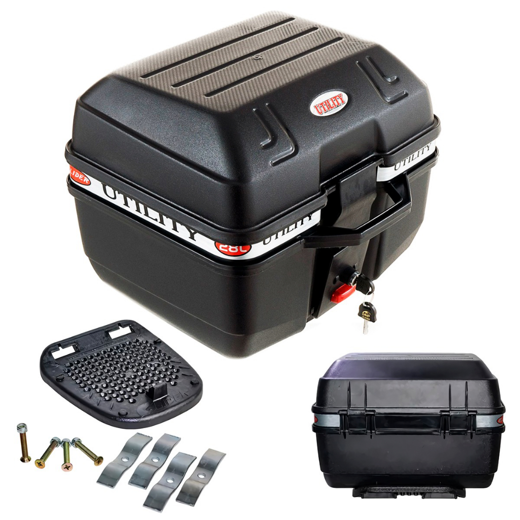 Bau de Moto Glider 28 Litros Modelo Universal p/ Motoboy Utility Bauleto Com Base Bagageiro