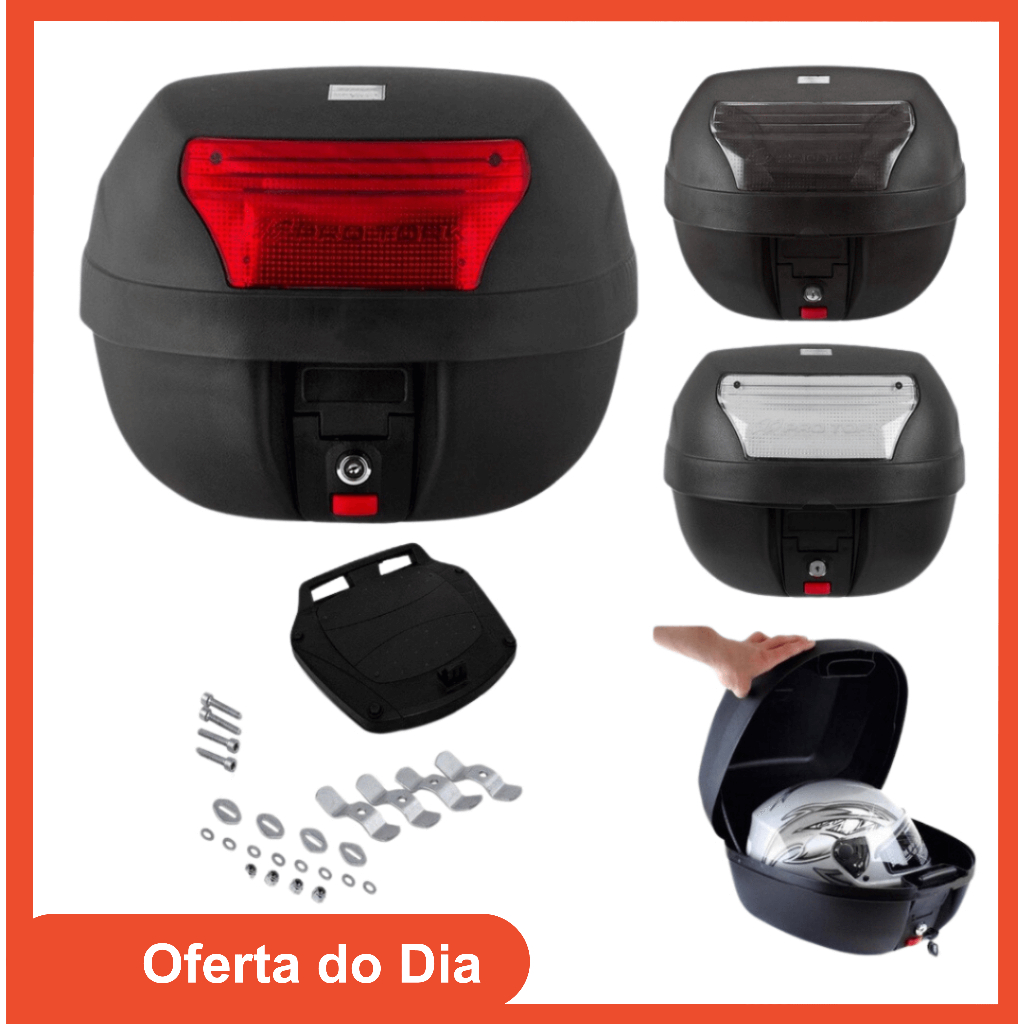 Bau Para Moto Bauleto Baú Grande 45 Litros Pro Tork Com Refletor Modelo Universal Motoboy Com Base