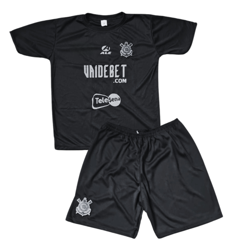 Conjunto Infantil do Corinthians Camisa e Shorts Preto Futebol Pronta Entrega Timão