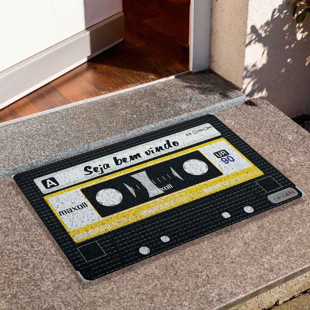 Tapete de Porta Divertido Capacho Frase - Fita K7 Seja Bem Vindo