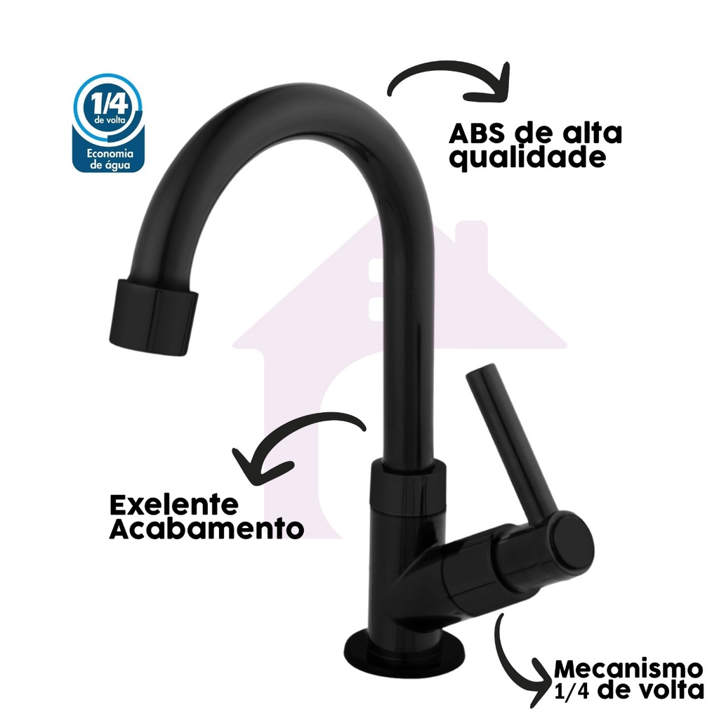 Torneira Pia de Banheiro Lavatório Lavabo Preta All Black ABS 1/4 de Volta