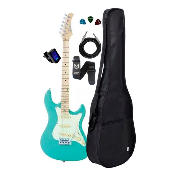 Kit Guitarra Eletrica Strinberg Sts100 Surfgreen + Capa Cabo