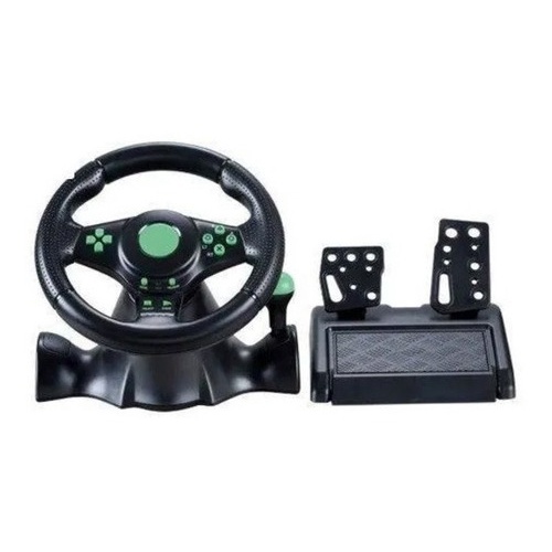 Volante De Vibração C/ Pedal E Cambio Gamer Pro Kp-5815a P/ Xbox 360 Ps3 Ps2 Pc Usb Preto/verde
