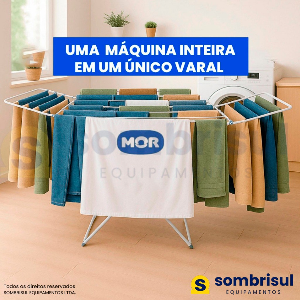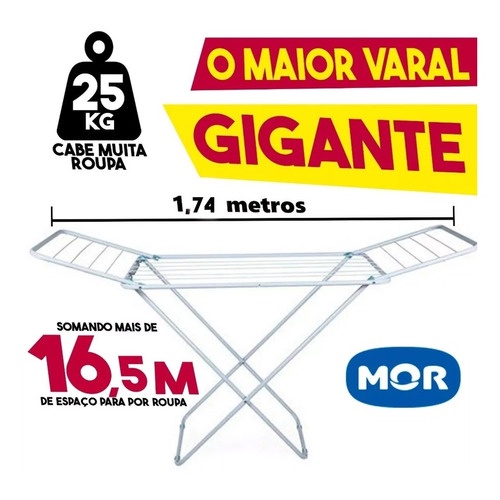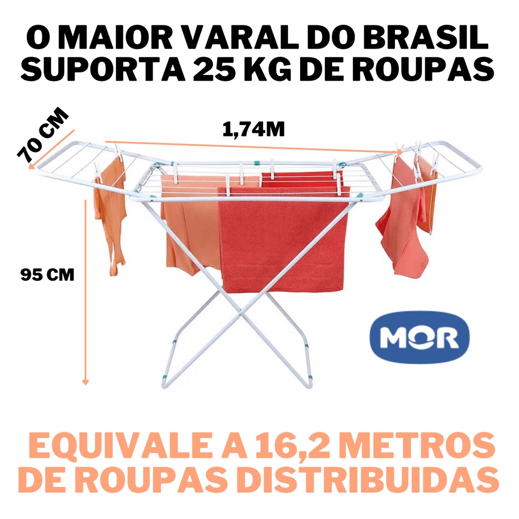 Varal de Chão Grande Maxi MOR com Abas Capacidade 25kg de Roupas Úmidas Não Enferruja Dobrável Aço