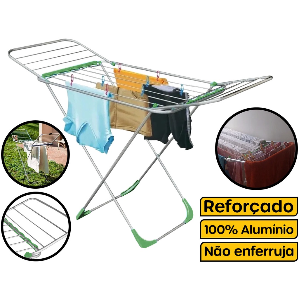 Varal De Chão Roupa Alumínio Grande Dobrável Com Abas Não Enferruja Prático Excelente Qualidade Seca Roupa Retráte