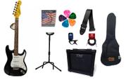 Kit Guitarra Elétrica Strato Tagima Woodstock Tg-500 Classic Bk Preta Gx01