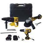 Kit 3 em 1 Martelete Parafusadeira Esmerilhadeira 36V Nakan