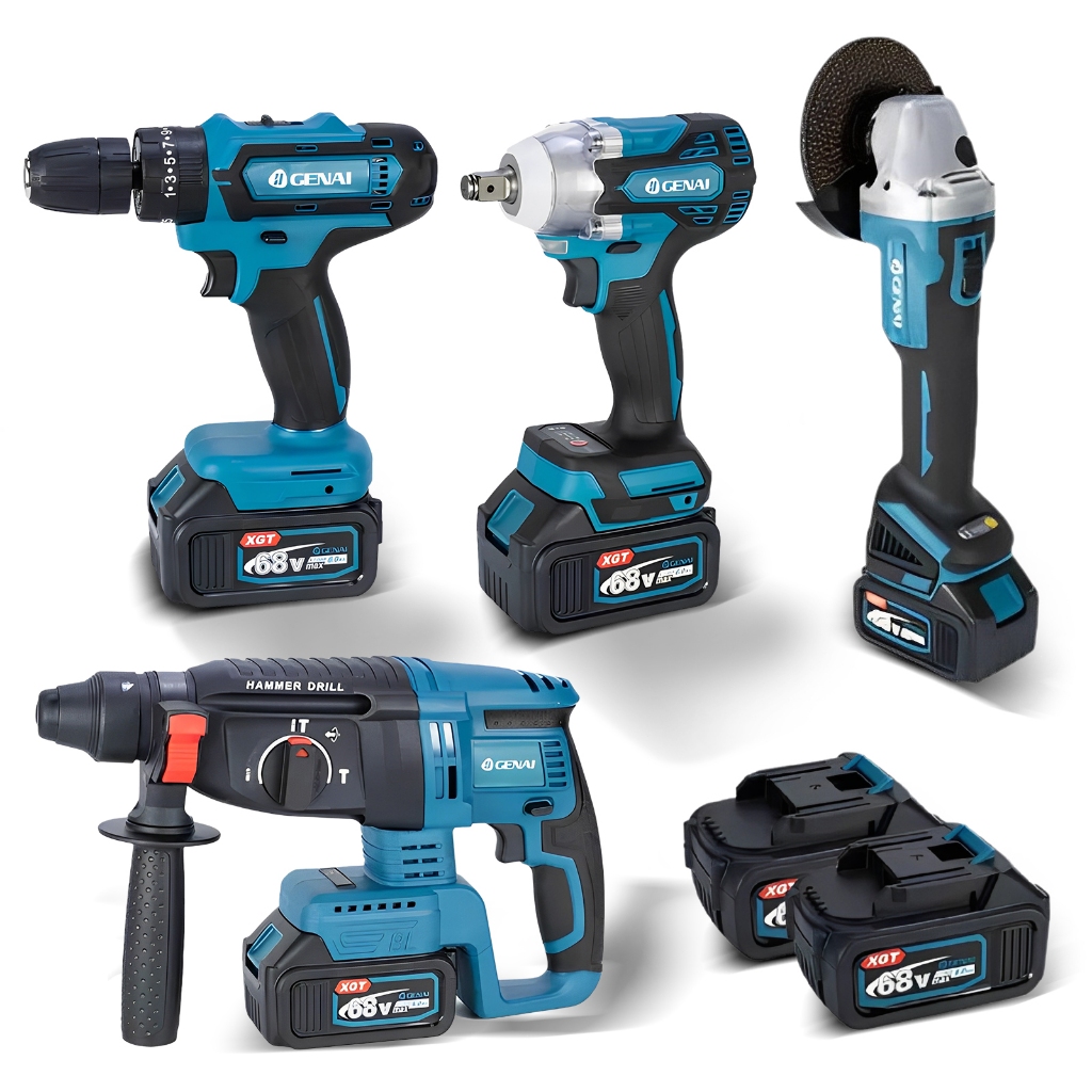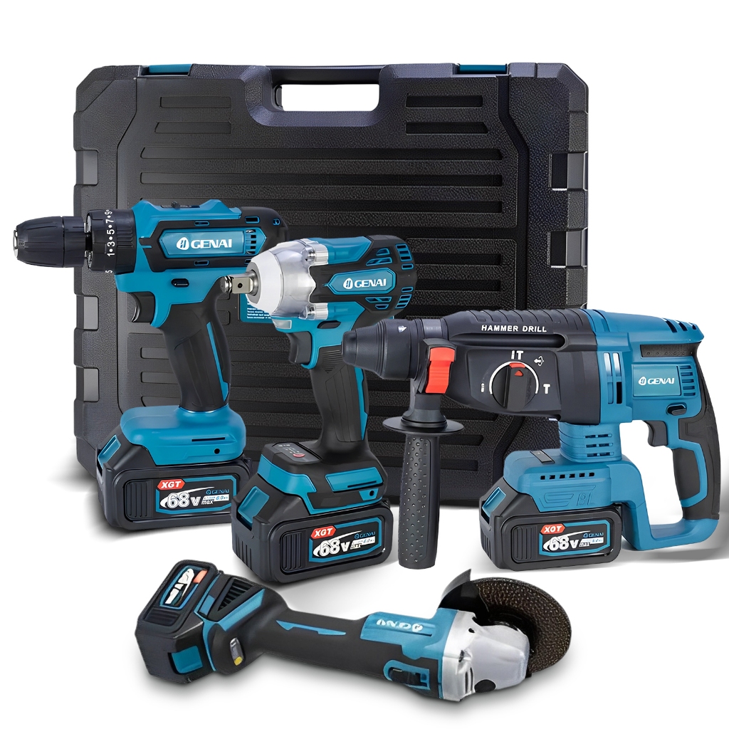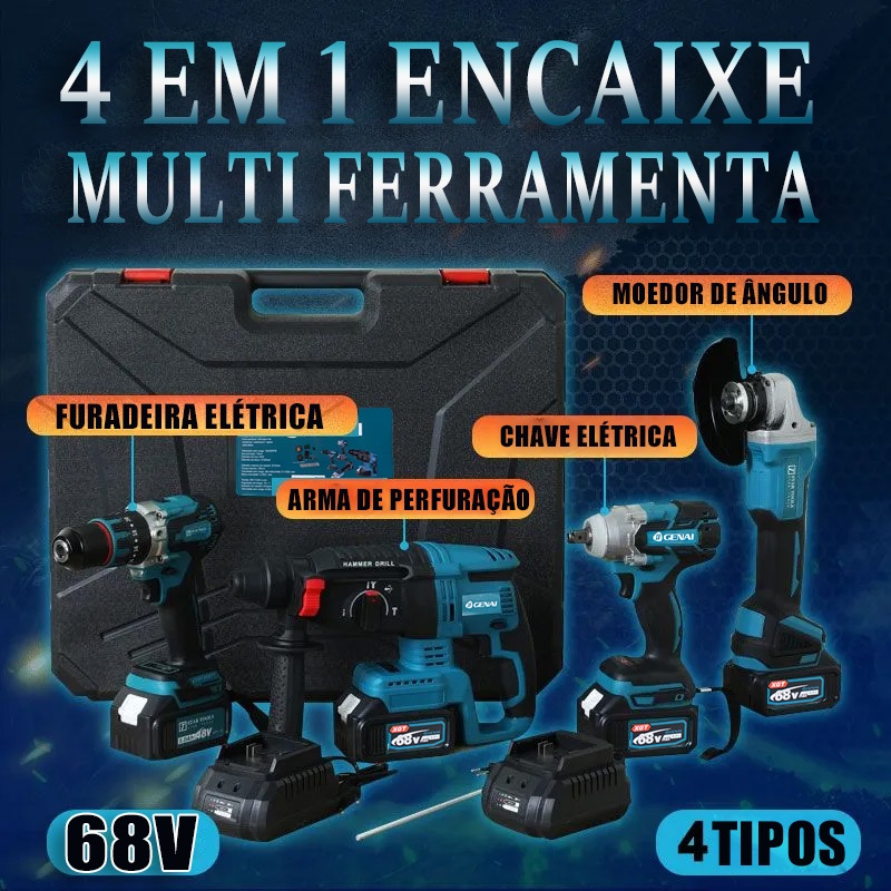 KIT FERRAMENTAS MULTIFUNÇÕES 4 EM 1 PROFISSIONAL 68V 6.0MAH CHAVE DE IMPACTO PARAFUSADEIRA ESMERILHADEIRA E MARTELETE