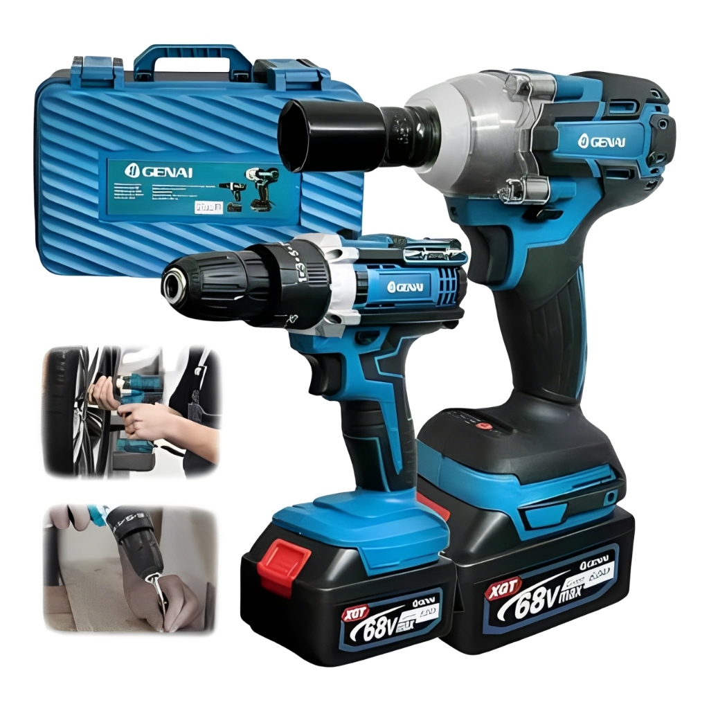 Kit Parafusadeira E Chave De Impacto 68V 2 em 1 + Maleta Liquida