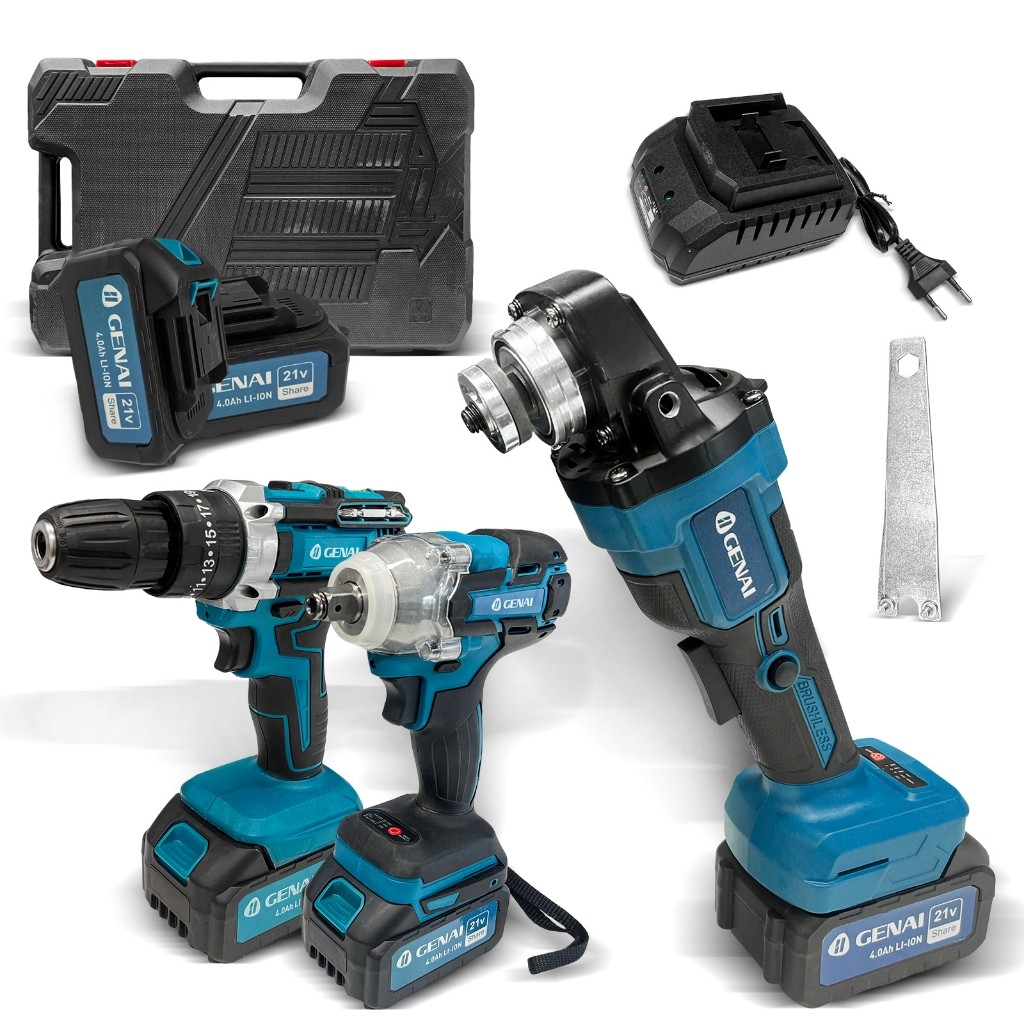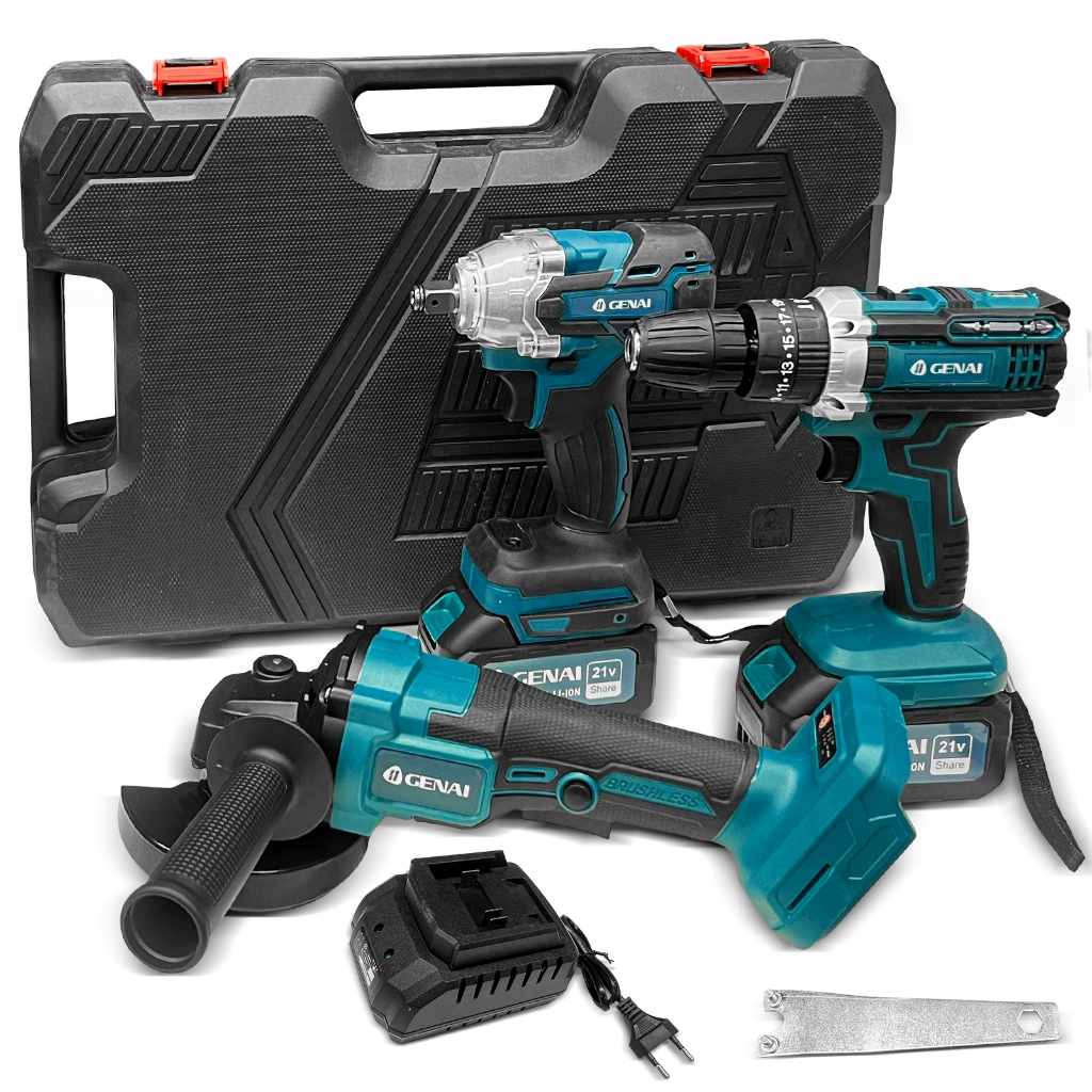 Kit 3 EM 1 Esmerilhadeira Parafusadeira Chave 1/2 21v + Caixa De Ferramentas