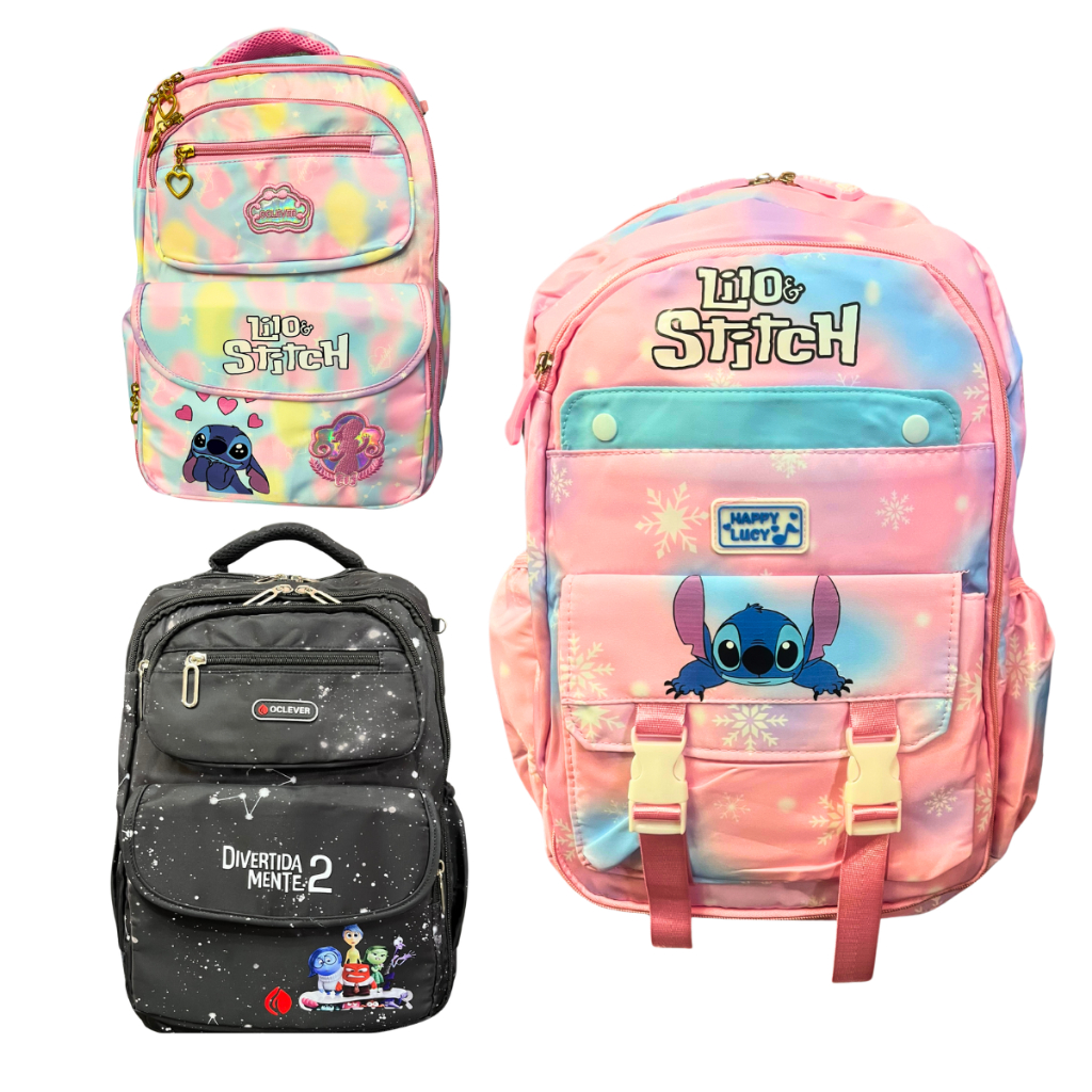 Mochila do Lilo Stich e Divertidamente Infantil Rosa menina Bolsa Escolar Creche Passeio