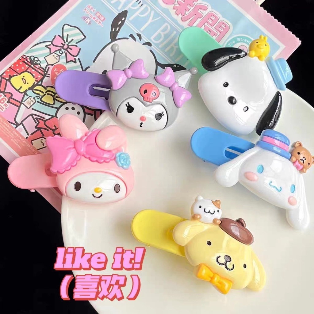[Estoque Pronto] Kuromi Hair Clip Girl Cute Cinnamon Dog Hair Accessories Cartoon Melody Pudding Dog Hair Clip Back Head Hair Tidying Handy Tool Cabeleireiro feminino