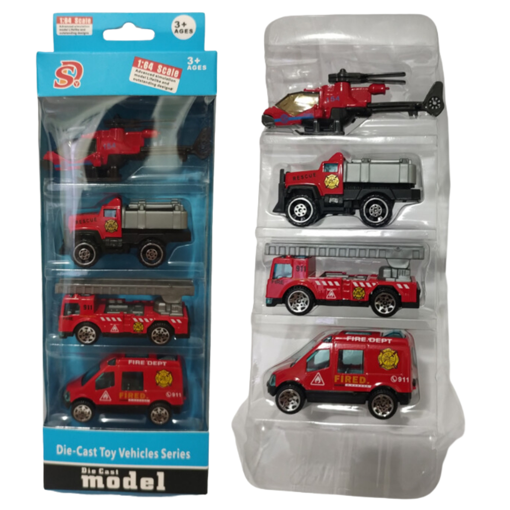 Kit 6 Carrinhos Conjunto Carrinho de Brinquedo Fricção Bombeiro Obra Militar Tanque Escavadeira Trator Helicoptero Caminhão para Crianças