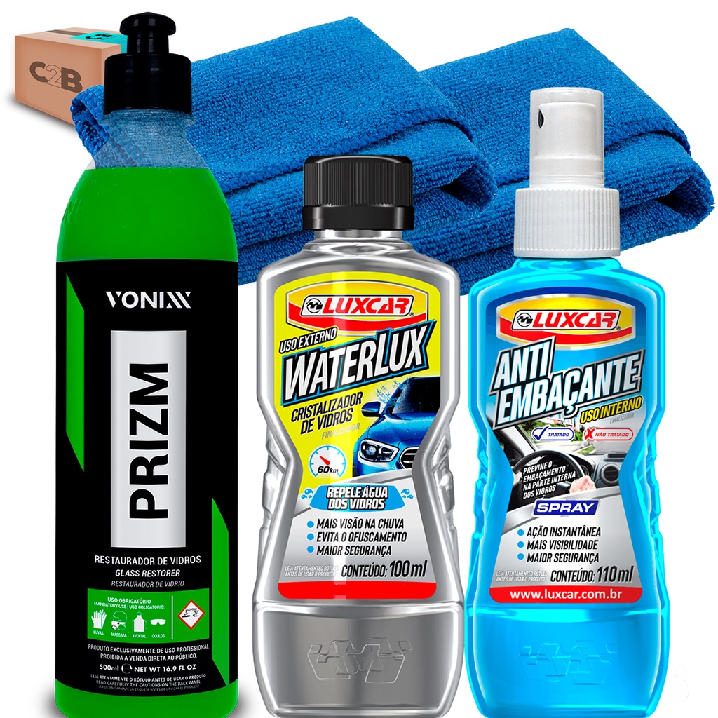 Kit Completo Para Limpeza De Vidros Prizm Vonixx Anti Embaçante e Cristalizador Luxcar