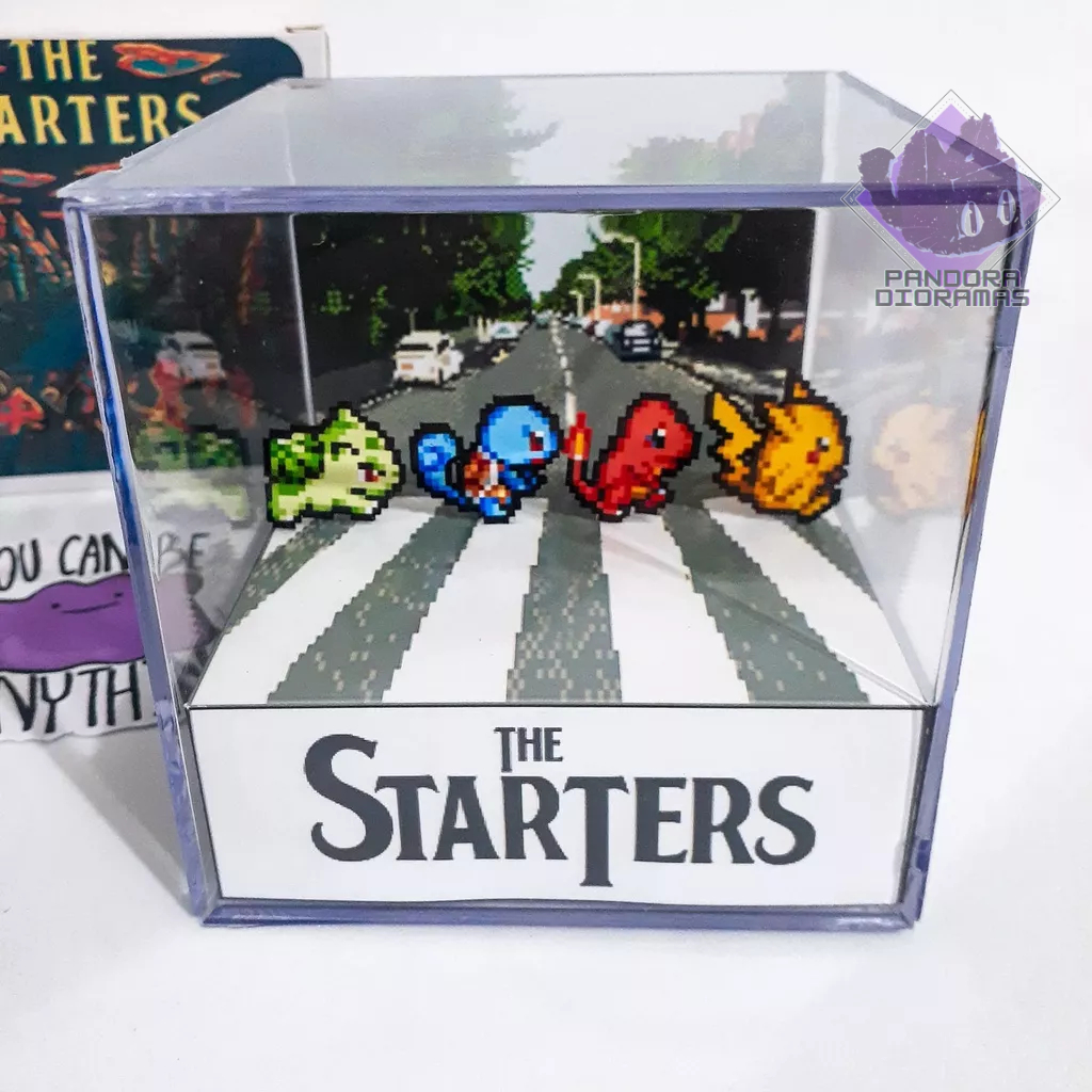 Diorama Pokémon The Starters em Abbey Road Cubo de Acrílico 9x9x9cm