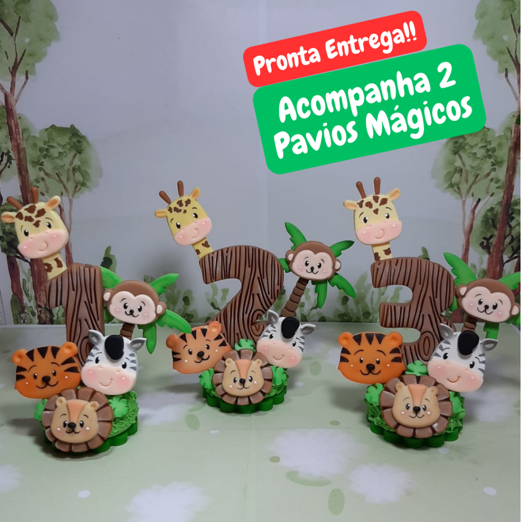 Vela Aniversário Biscuit Tema Safari Topo de bolo Festa Infantil 1, 2 e 3 anos