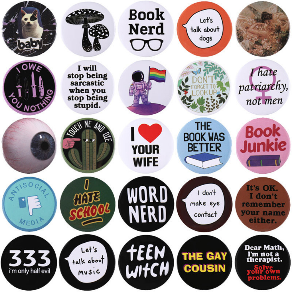 Kit 5 bottons Broches Pins Acessório Para Bolsa Para Roupa Botton Para Mochila Personalizada De 4.4cm