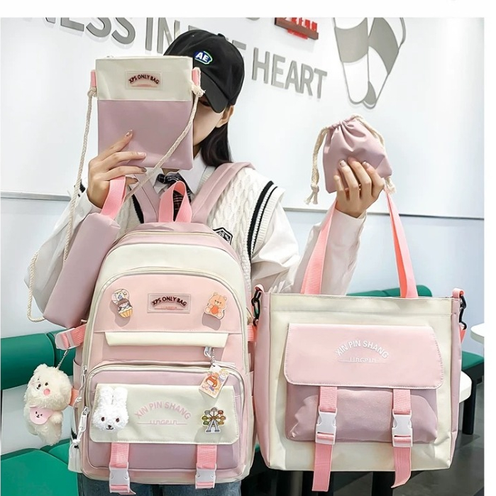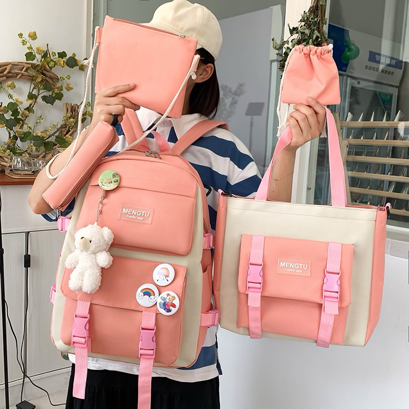 Kit 5 Bolsa Mochila Femina De Nylon adequado Para Escola Multiuso