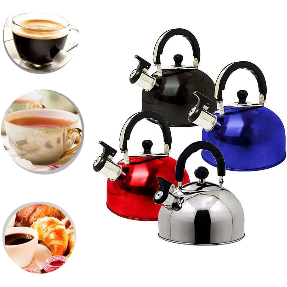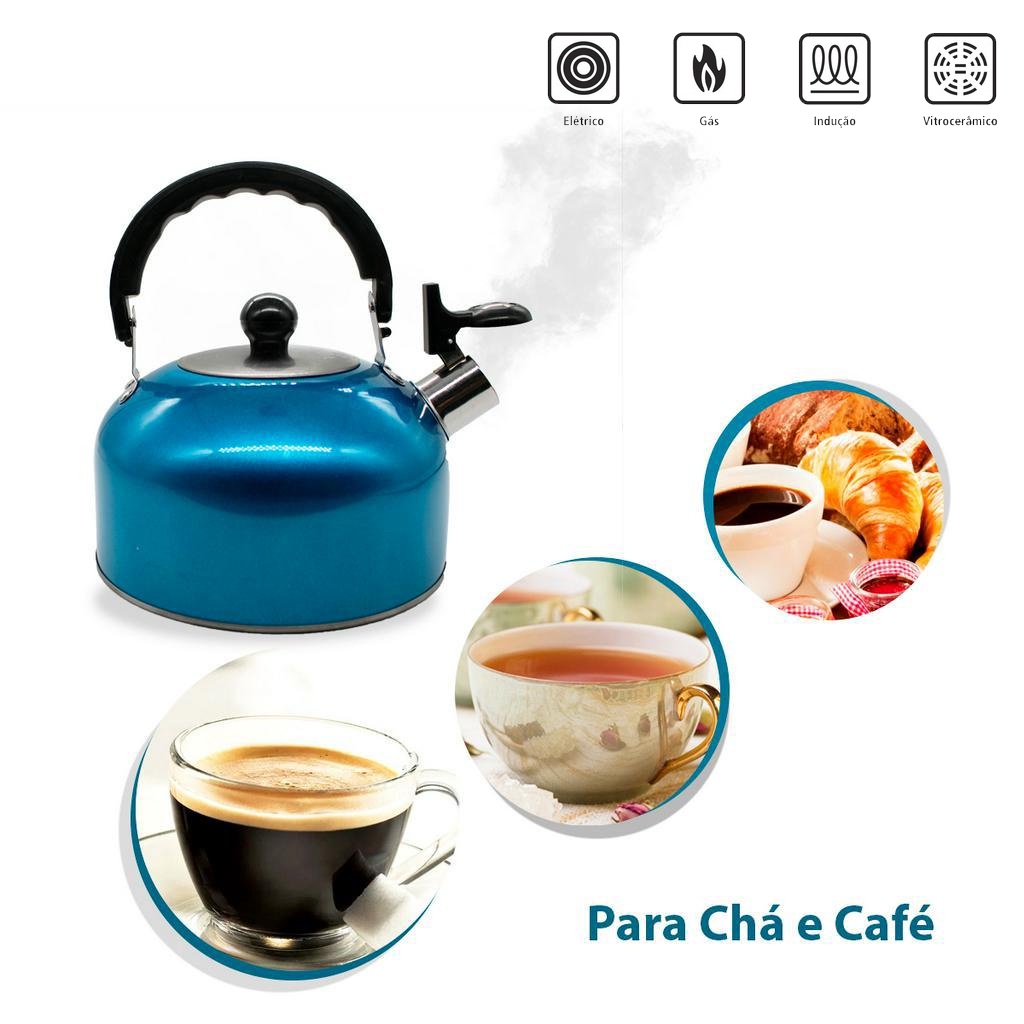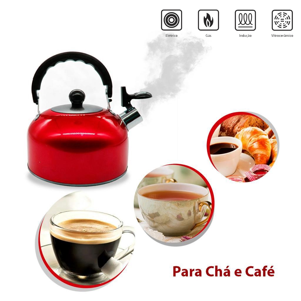 Chaleira com Apito Premium 2L Aço Inox Indução Fogão Prata Vermelha Preta Azul