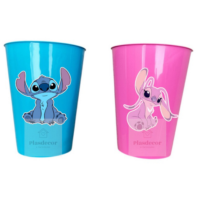 10-15-20 Copos Adesivados de Plástico Stitch e Angel Para Festa lembrancinhas Presentes Aniversários Festa Crianças