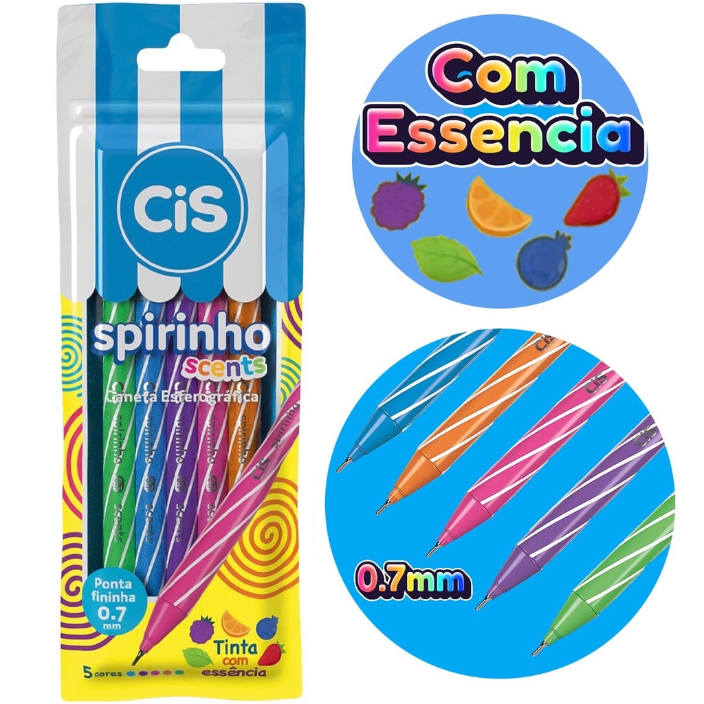 Caneta Esferográfica Cis Spirinho Perfumada Cis Spiro Estojo c/5