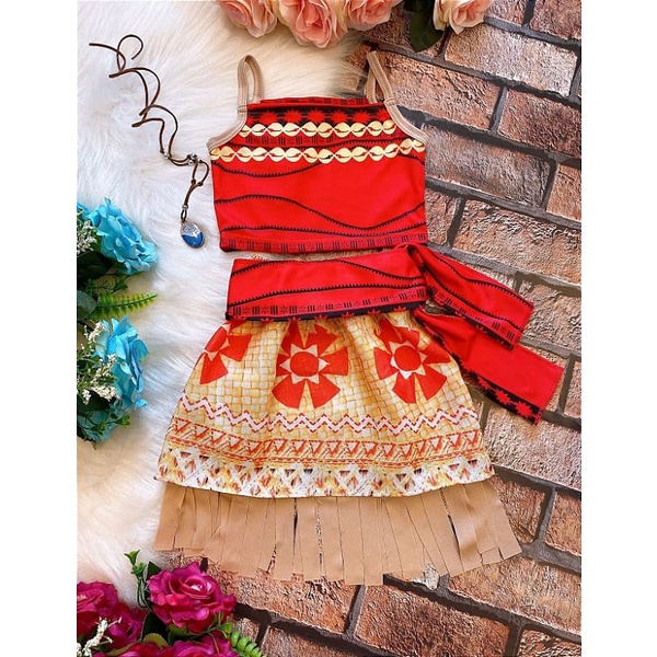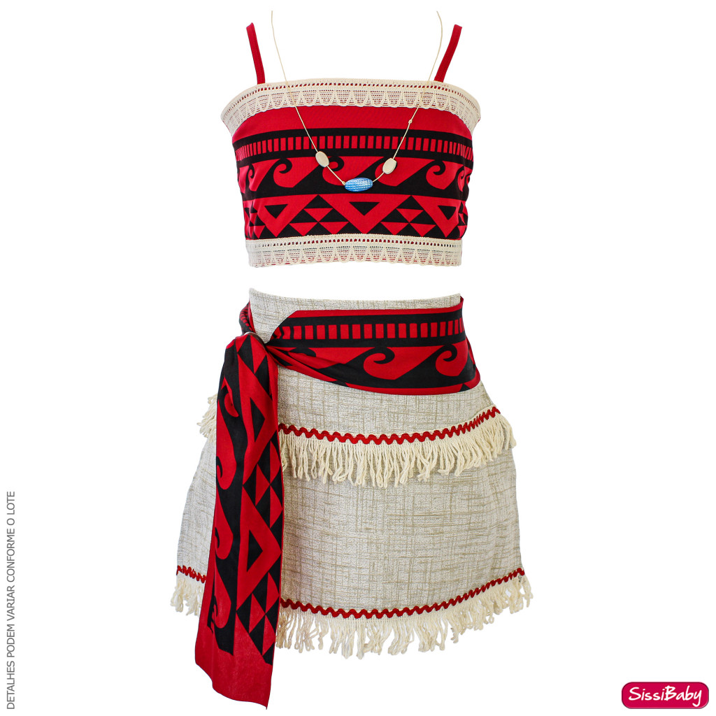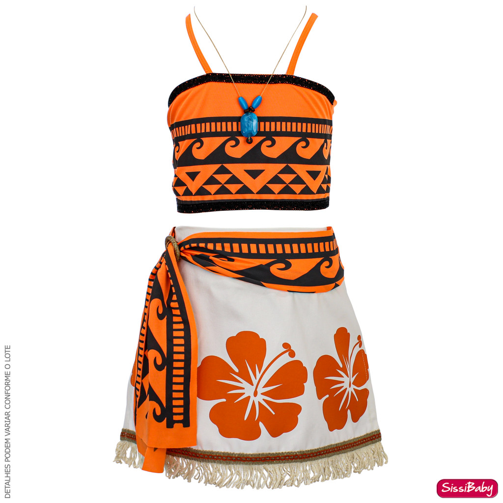 Fantasia Infantil Moana Com Top De Alça, Colar E Faixa