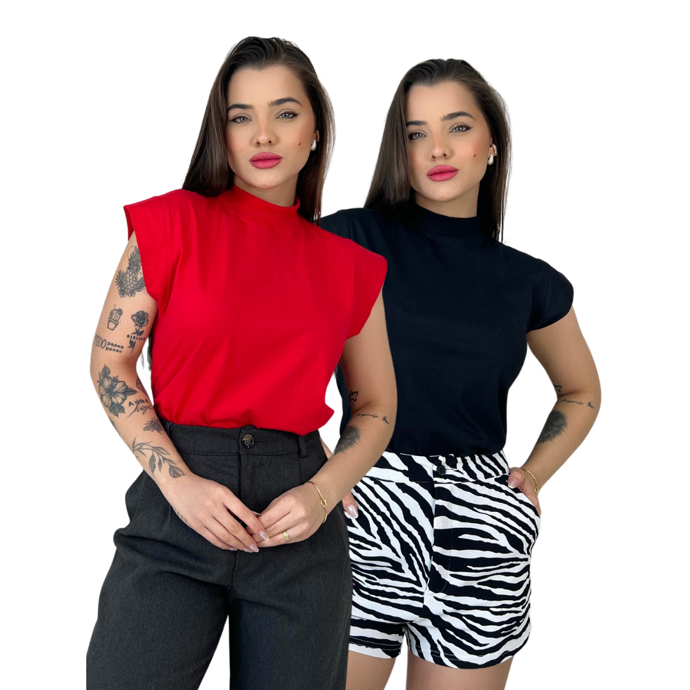 KIT 2 BLUSINHA T-SHIRT FEMININA GOLA ALTA 100% ALGODÃO BLUSA BASICA COM MANGA