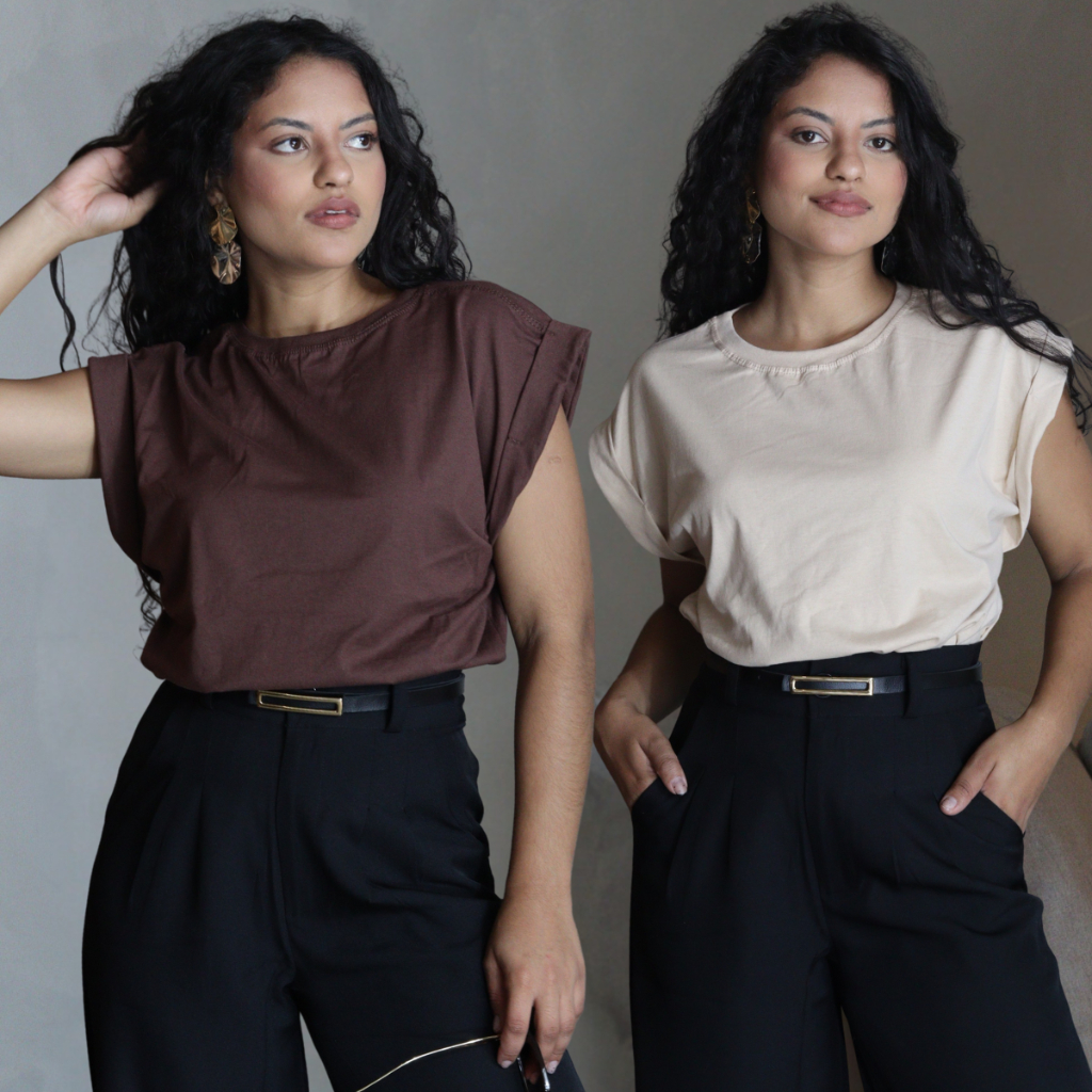 Kit 2 Muscle Tee Blusas Sociais Minimalista T-shirt Camiseta Feminina 100% Algodão Luxo