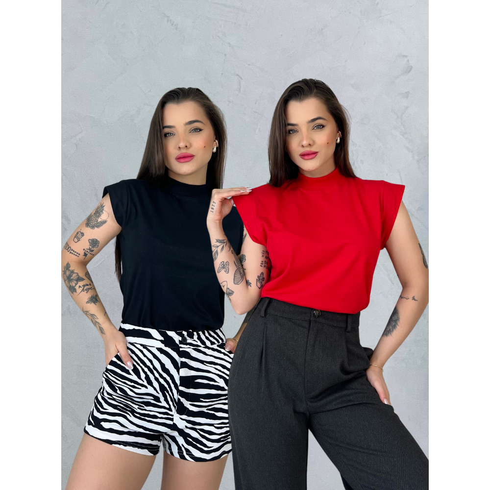 kit 3 T Shirt blusa gola alta feminina manga Muscle Tee 502 curta camiseta básica lisa preta Off nude