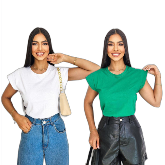 kit 2 pecas Blusa Blusinha T-shirt Muscle Tee Moda Bloguerinha Viscolycra