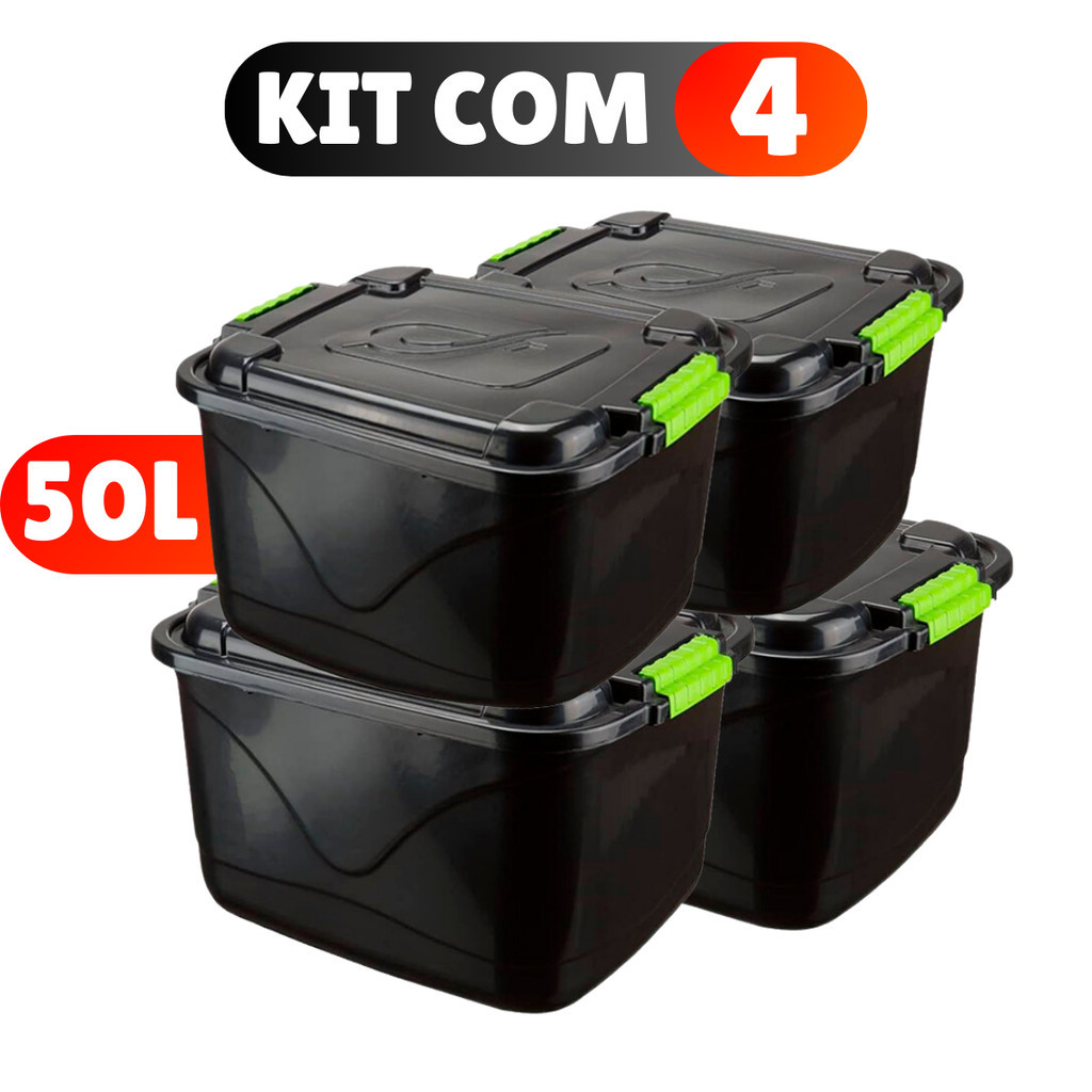 Kit 4 Caixas Organizadora 50 Litros Grande C/Tampa e Trava Cesto para Brinquedos e Multiuso