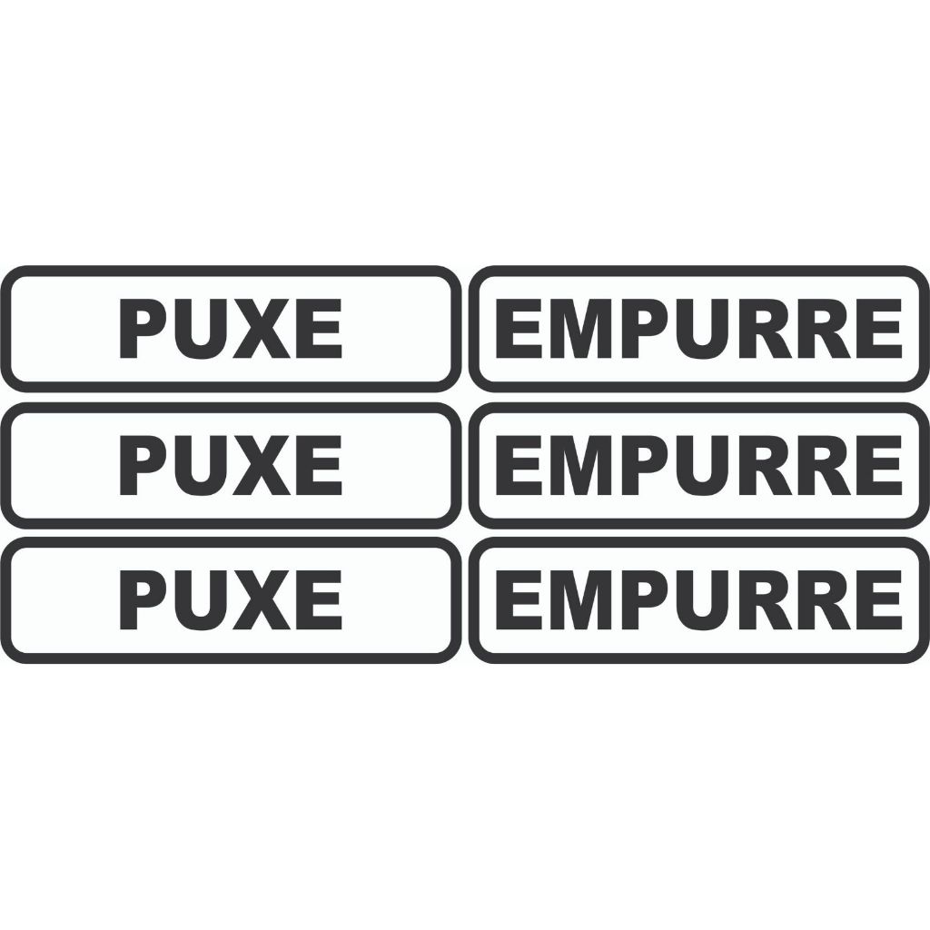 Kit com 6 Adesivos Porta Puxe Empurre, Sinalização para porta impresso em fundo branco