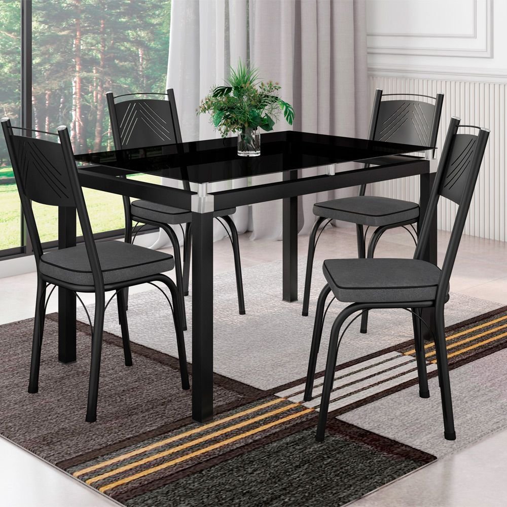 Conjunto Sala de Jantar Mesa com 4 Cadeiras 151 Malva Tampo de Vidro 107cm A01 Preto/assento Andorin