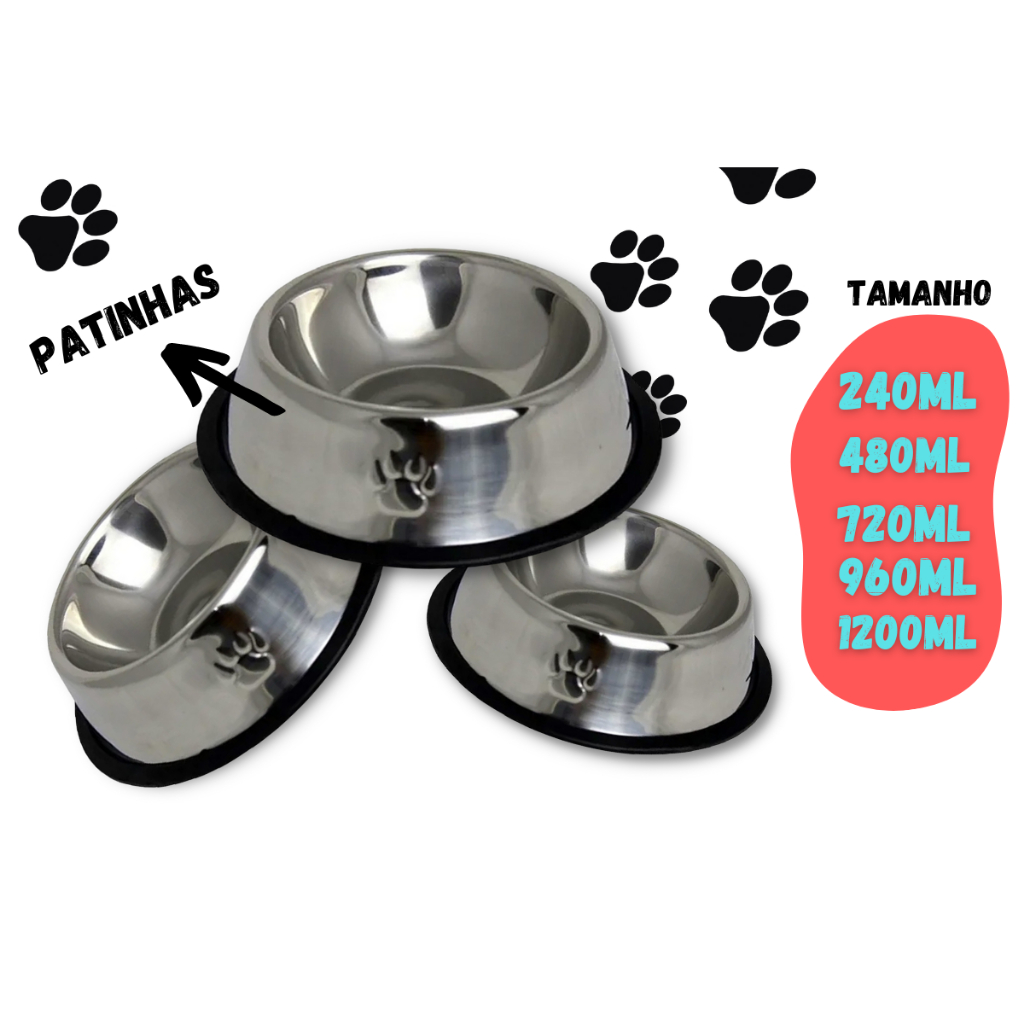 Comedouro e Bebedouro Vasilha Inox para Cães e Gatos - Resistente Mais Vendido - 150ml a 1400ml