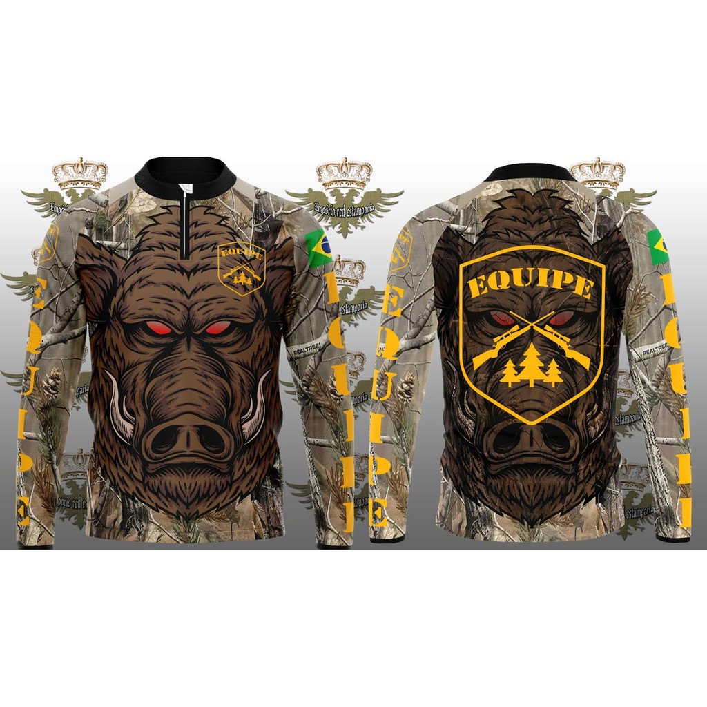 Camiseta Personalizada de Caça Manga Longa com ziper equipe