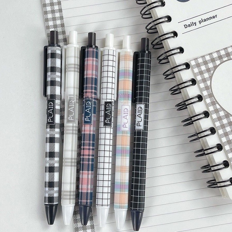 6 Pcs 0.5 Milímetros De Tinta Preta Retro Xadrez Retrátil Caneta Estudante Linda Bala Nib Gel