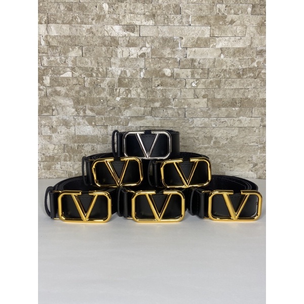Cinto V Preto Feminino Masculino Fivela Dourada e Prata