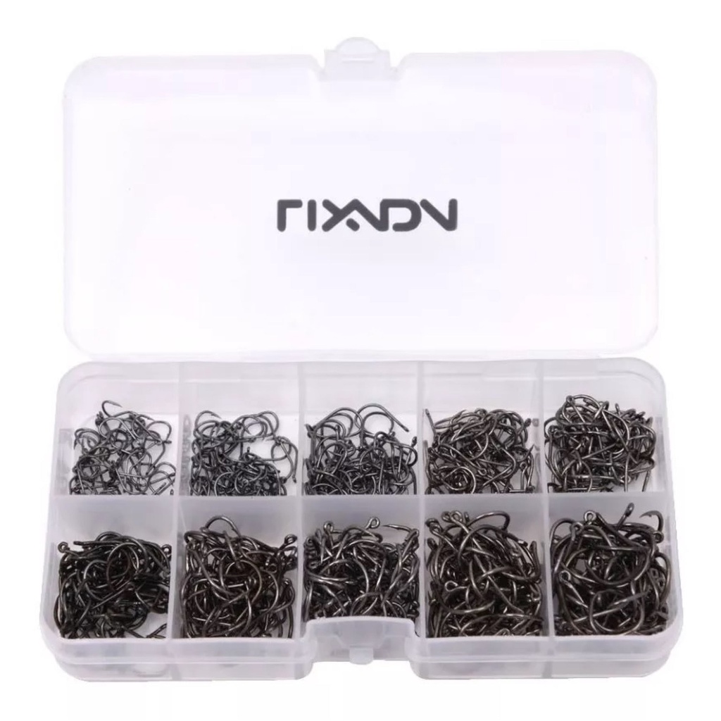 Kit de 600pçs de anzol de pesca com ganchos trincados,fabricado em aço de carbono de alta qualidade.
