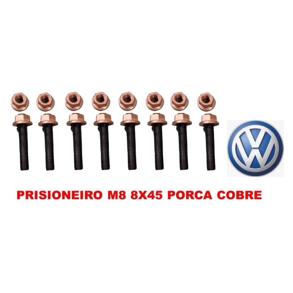 Prisioneiros Aço Rosca M8 Com Porca De Cobre 8 Coletor Ap Vw