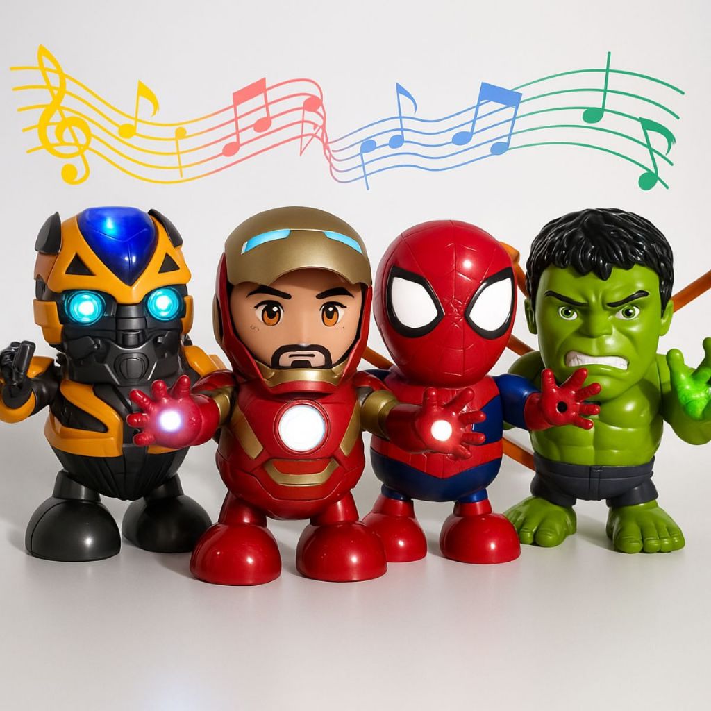 Boneca Herói Dançarino Robo AVENGERS Com Luz Sonora E Homem Aranha De Movimento Hulk De Ferro