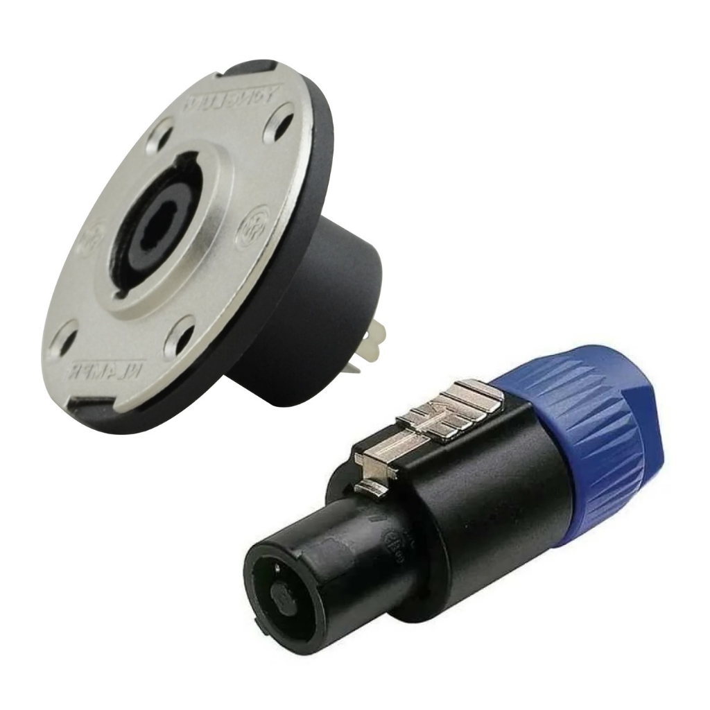 Kit Conector Plug Speakon Macho x Femea 4 Vias Painel Metal Mxt