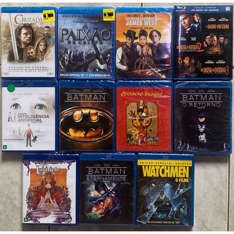 Filmes em Blu ray novos e lacrados (escolha o seu) Batman, Batman O Retorno, Inteligência Artificial, A Paixão de Cristo, Watchmen, Labirinto, Operação Dragão, As Loucas Aventuras de James West, Cruzada, Um Drink no Inferno