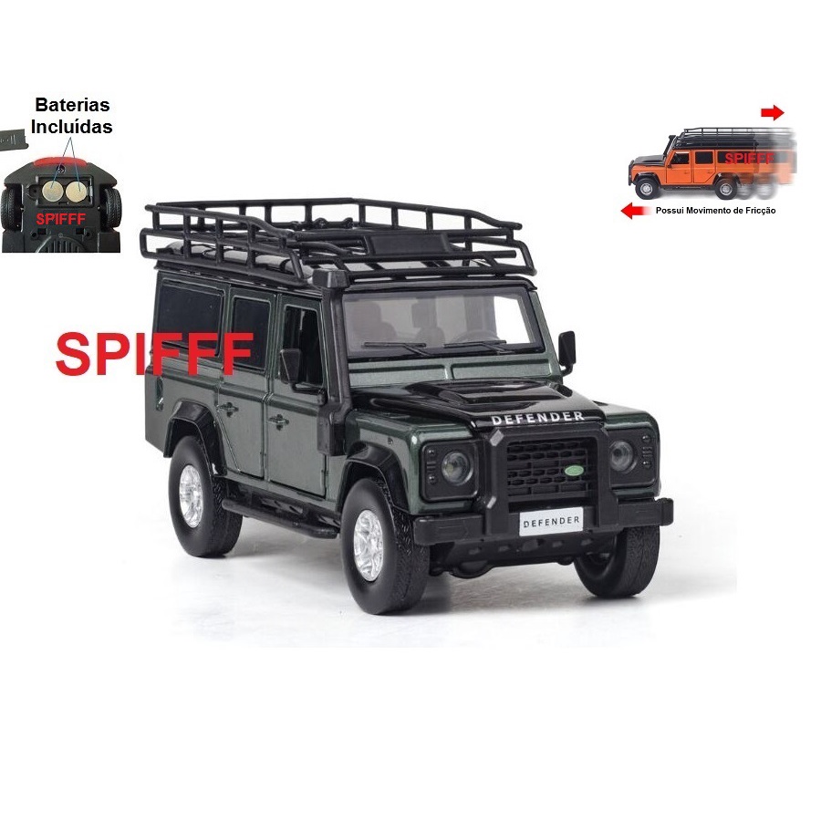 Miniatura Land Rover Defender 110 em Metal Escala 1:32 1/32 - Acende Faróis – Possui Bagageiro no Teto e Snorkel