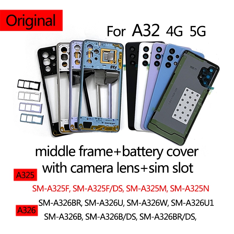 Original Para Samsung Galaxy A32 LTE 4G A325 5G A326 Carcaça Do Telefone Chassi Médio Cobertura Da Bateria Painel Traseiro Tampa