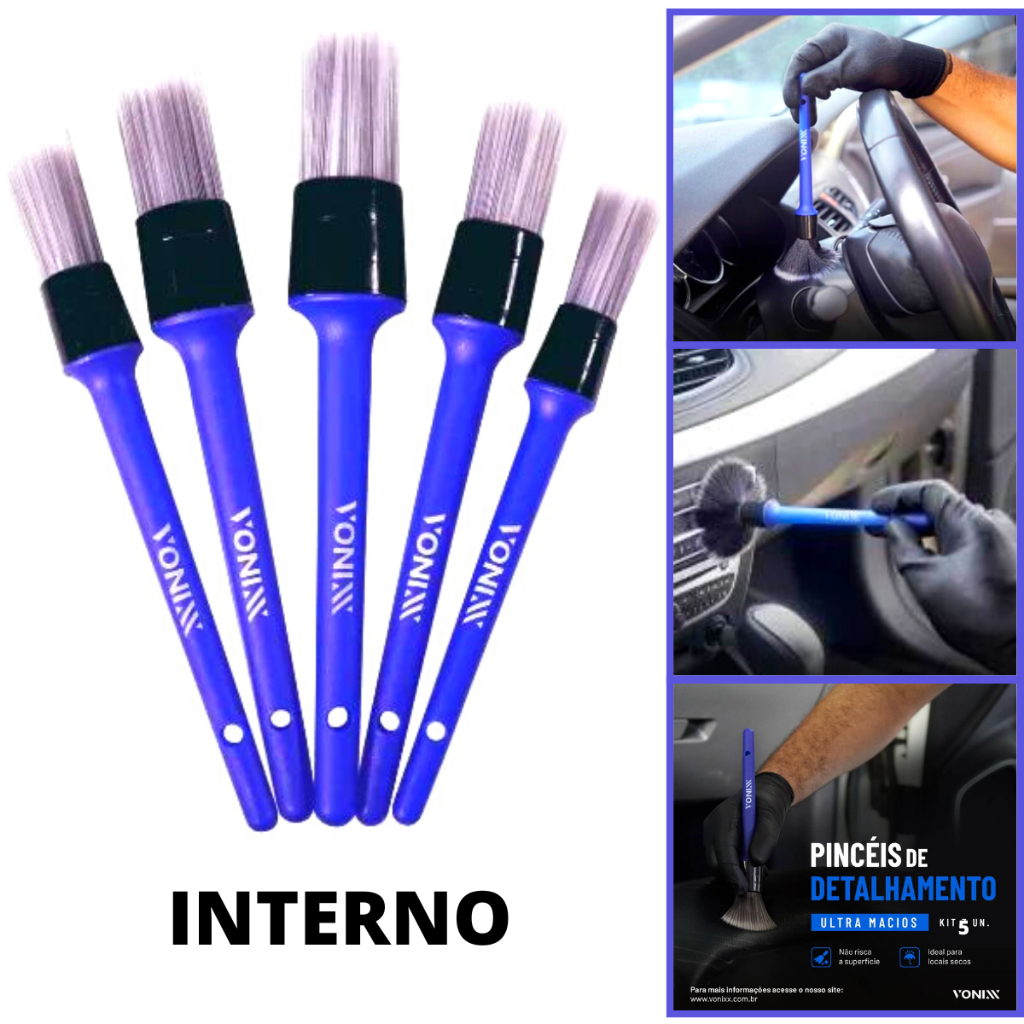 Kit 5 Pincel Para Limpeza Automotiva Lavagem Detalhada Interno Acessório Para Carros Motos Vonixx