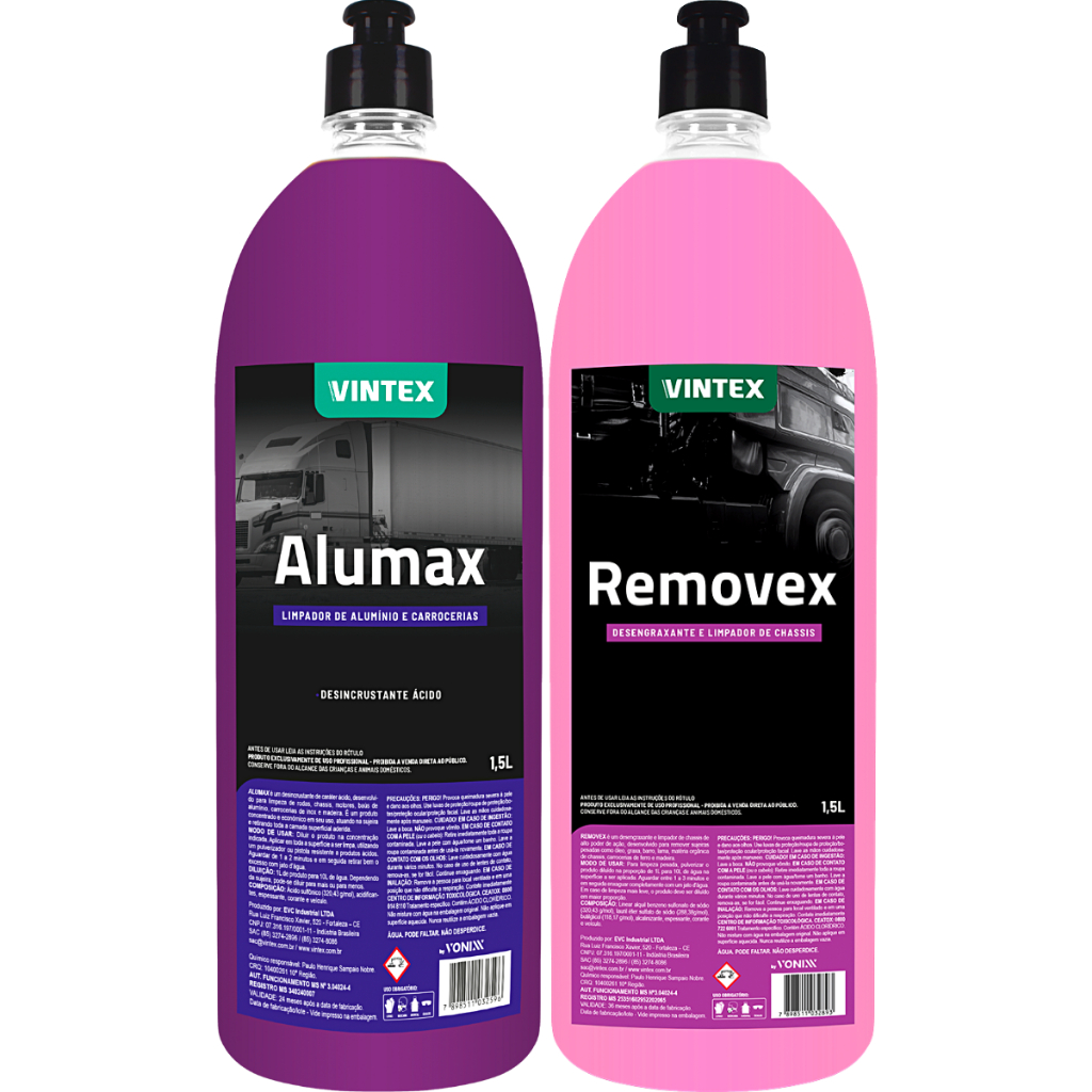 Kit Vintex Limpeza Automotiva Pesada Removex Alumax Desengraxante Desincrustante Para Limpar Chassis Carrocerias Motor Autos em Geral