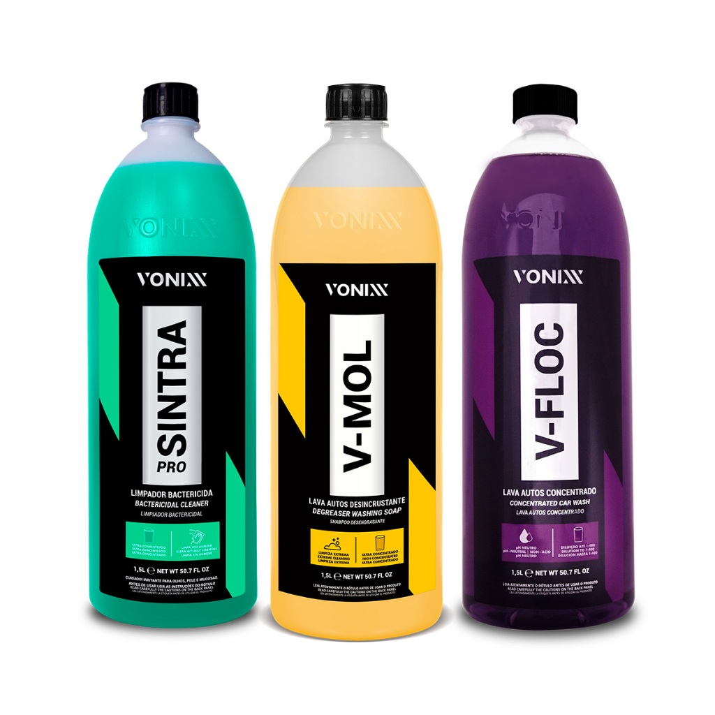 Kit lavagem automotiva shampoo V-floc lava autos V-mol multilimpador flotador sintra pro 1,5l vonixx