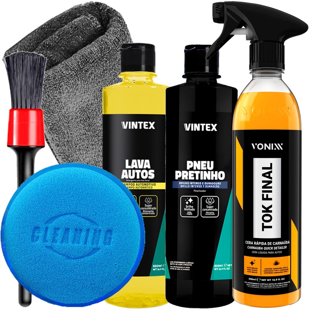 Kit Lavagem Vonixx Automotiva Carro e Moto Shampoo Lava Autos Cera Tok Final Pneu Pretinho e Acessórios Karbox