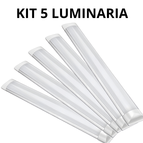 KIT 5 10 15 20 25 Luminária Linear Led 40W 120cm Lâmpada Tubular Slim Sobrepor Branco Frio Leitoso Bivolt INMETRO 40000h