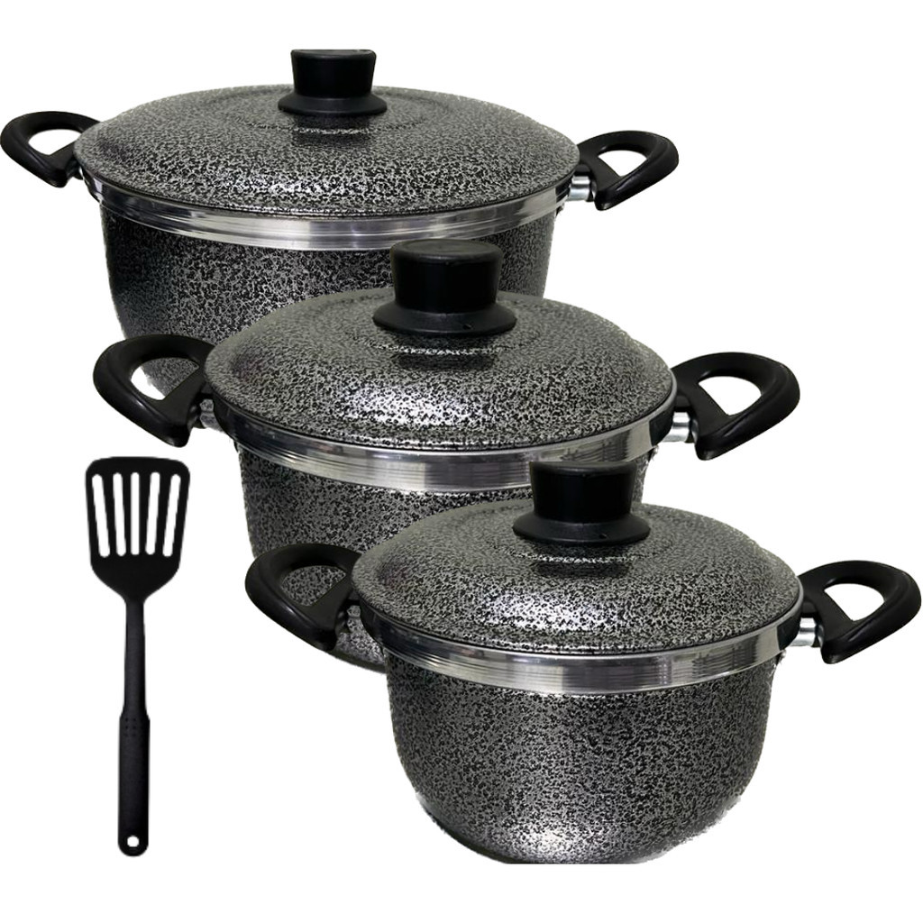 Kit Jogo 3 peças Panela Caçarola 16 e 18 Antiaderente Grafite Teflon Com Utensilio